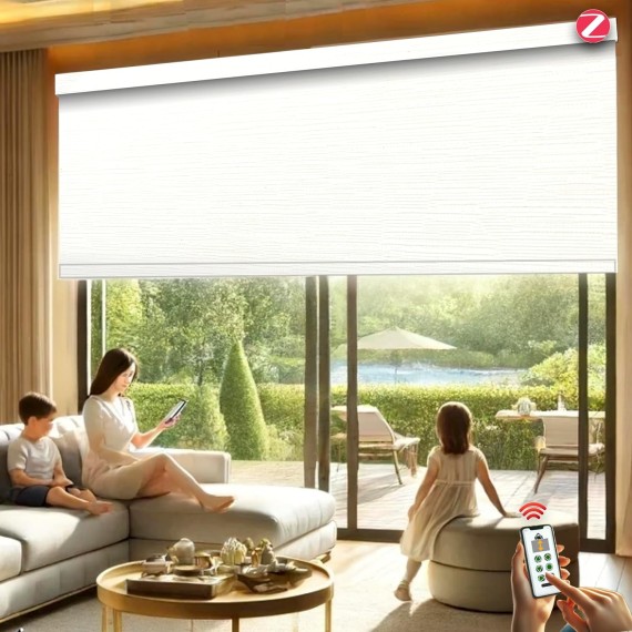 - [Excellent Blockout & Privacy] The motorized blind uses in a full polyester blackout fabric with a plastic valance cover that provides excellent light blocking. Beautiful surface texture, backside white coating, easy to clean, you can clean off the dust with a dry or damp cloth. Excellent privacy protection, you don't need to worry about the windows exposing your interior.